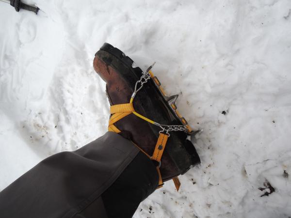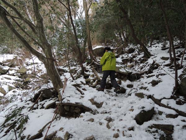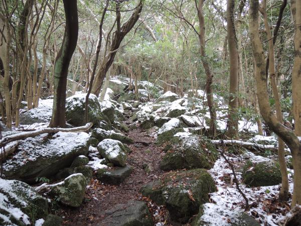 - 登山道は傾斜もきつくなく歩きやすい登山道ですが途中より積雪があり滑りやすいのでアイゼンが必要です。