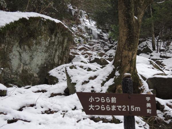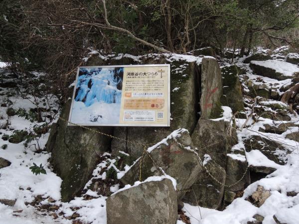 - 昭和の森(60分)ウサギ道分岐(25分)小つらら(10分)大つらら難所ヶ滝(6分)小つらら