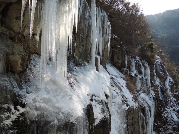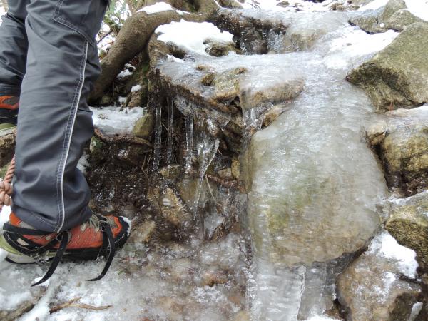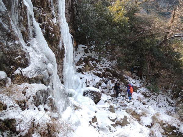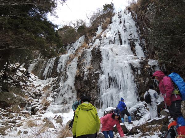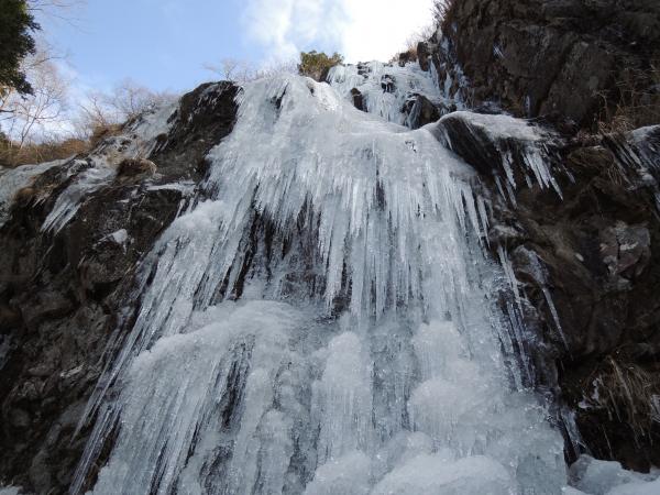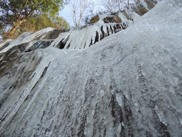 滝の周りはつるつるに凍っていますので十分に注意して登りましょう。