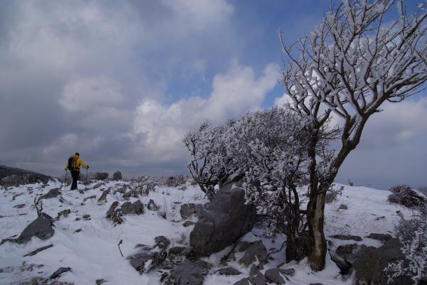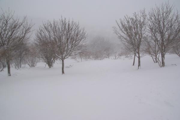 惜しまれつつもその幕を閉じた高槻店でお世話になった先輩と、春を探しに鈴鹿山系の藤原岳に行ってきました。登山口では陽もさして暖かく、ウールのシャツ一枚で登り始めました。・・が、少しずつ温まり始めた6合目付近からちらちら白いものが見え始め、八合目辺りから真っ白に。福寿草は?節分草はいったいどこへ?ペースを上げるも体が芯から冷えはじめ、ジャケットを羽織りました。昼ごはんをすませて小屋を出るころにはちょっとした吹雪に・・。春はまだまだ先だったようです。