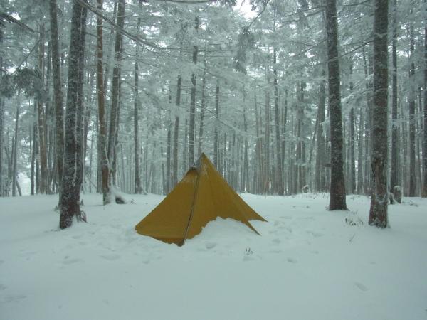 寒波到来初日で、1日目と2日目の積雪量の違いにびっくり。1日目の夕方ぐらいか降り出し、夜通し降ったりやんだり。朝起きると別世界に。当然、完全冬装備行っていたので良かったですが、単独だったので、少々焦りました。