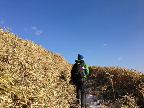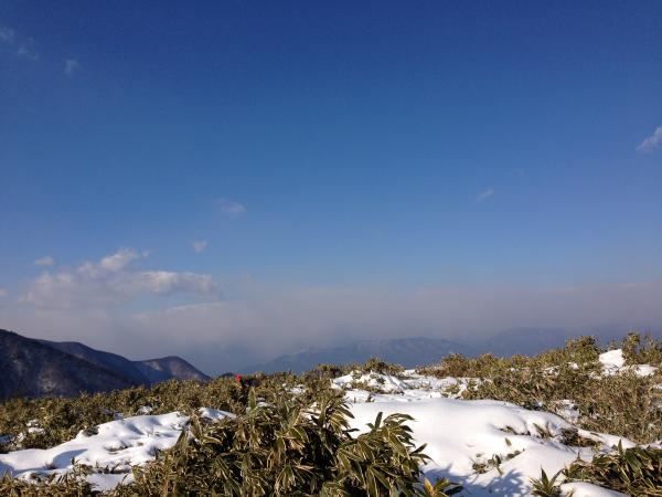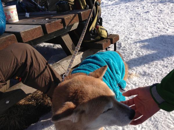 登山口から20分ほどで凍った雪道に変わったためアイゼンにお世話になりました。
