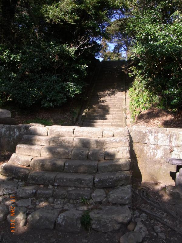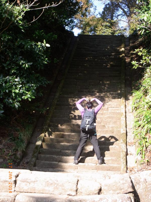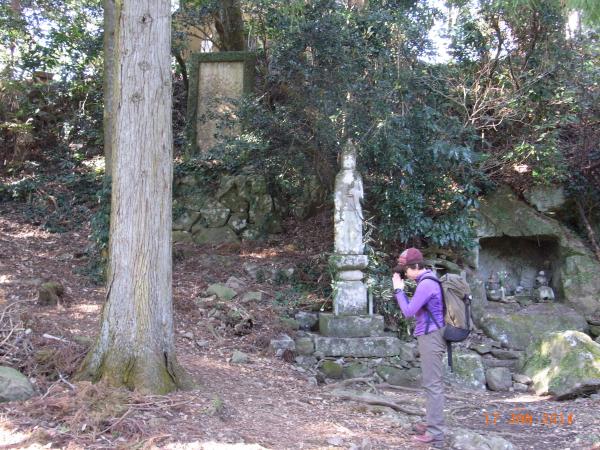 福満寺から1合目を過ぎると登山道らしくなってきます。意外な急登と1月とは思えない気温に、汗がじんわりと出てきます。仁王門跡の石段を登るとひっそりとした観音堂が立っていて、その左上を少し登ると南峰です。観音堂はなにか出てきそうな雰囲気なので、けっこう怖かったです。