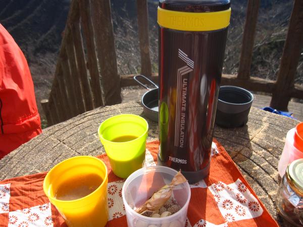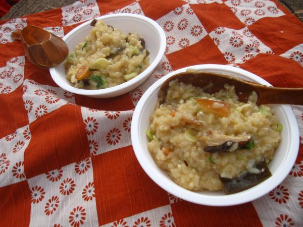 天気が良く、ほぼ日向でしたが、風が冷たかったので、温かい雑炊はおいしかったです。