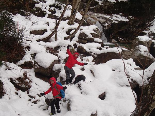 日本の滝100選に選ばれている八淵の滝を見ながら、途中、岩場があったり、ちょっとした鎖場があったり・・・楽しい道が続きます!