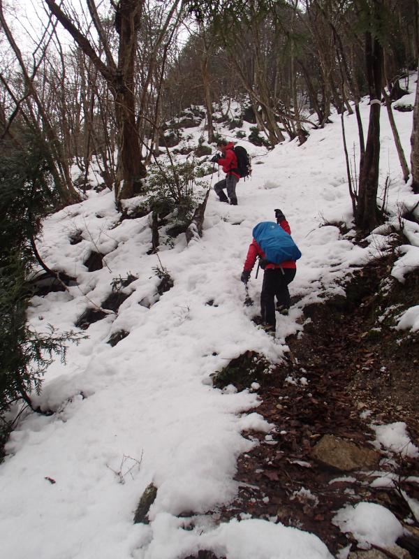 前日まで降っていた雪は、暖かさから雨へと変わってしまい、どーするー?と言いながららも取りあえず登山口へ・・・