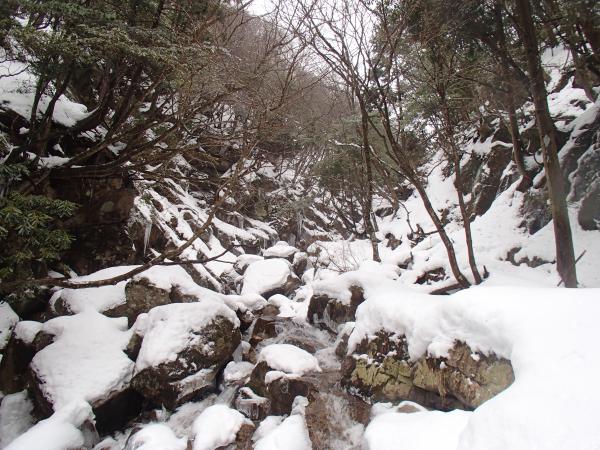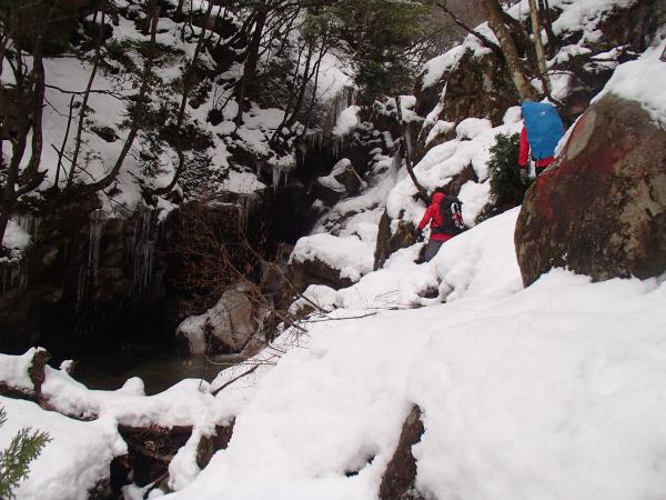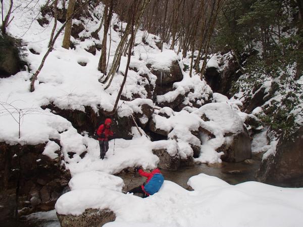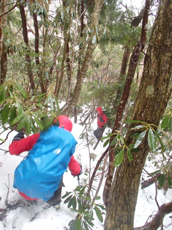 帰りは迂回ルート!といっても夏場は絶対に使われないであろう道。沢沿いではなく沢の少し上の道なき道を木をかき分けながら歩きます。