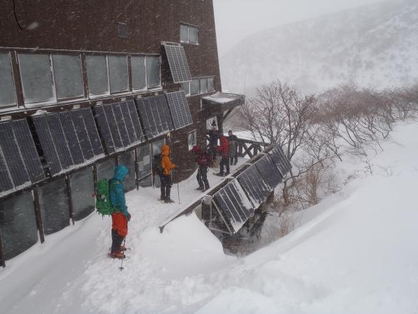 稜線に出た所で敗退となりましたが、稜線から少し降りたところからはドライパウダーで、小屋まで