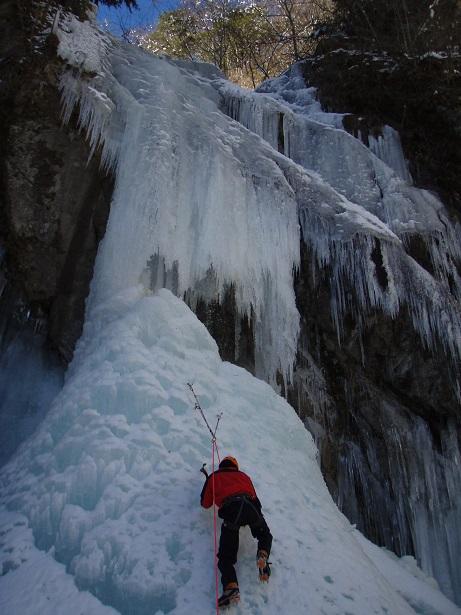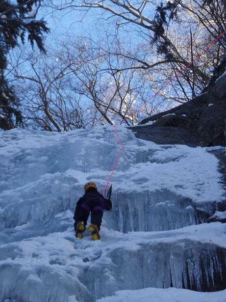こちらは、上部まで氷がついており、谷垣リーダーがザイルを張ってくれいざ開始