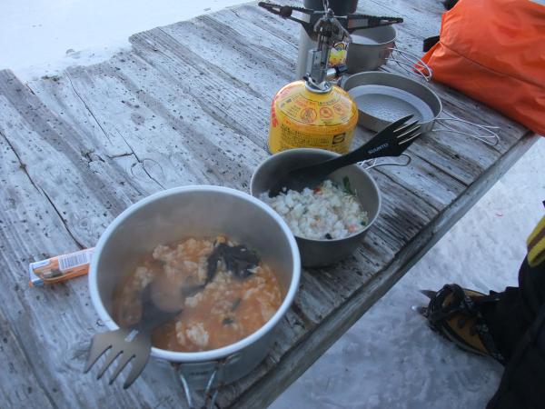 着ていった物:(上)メリノウールのアンダーシャツ、薄手のフリース、ハードシェル