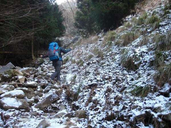 残り20分辺りからは、積もっていた雪が固まって滑りやすい箇所がありました。