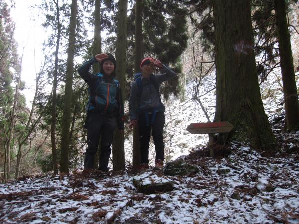 山頂まで20分の案内板から、日影は雪が固まっていますので、滑りやすい箇所があります。
