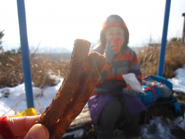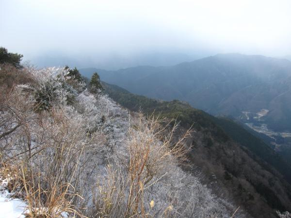 登頂と同時に雪が降り出したのですが、ランチをしている間に止み、きれいに周囲の山や眼下の町が見えました。
