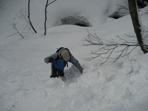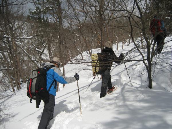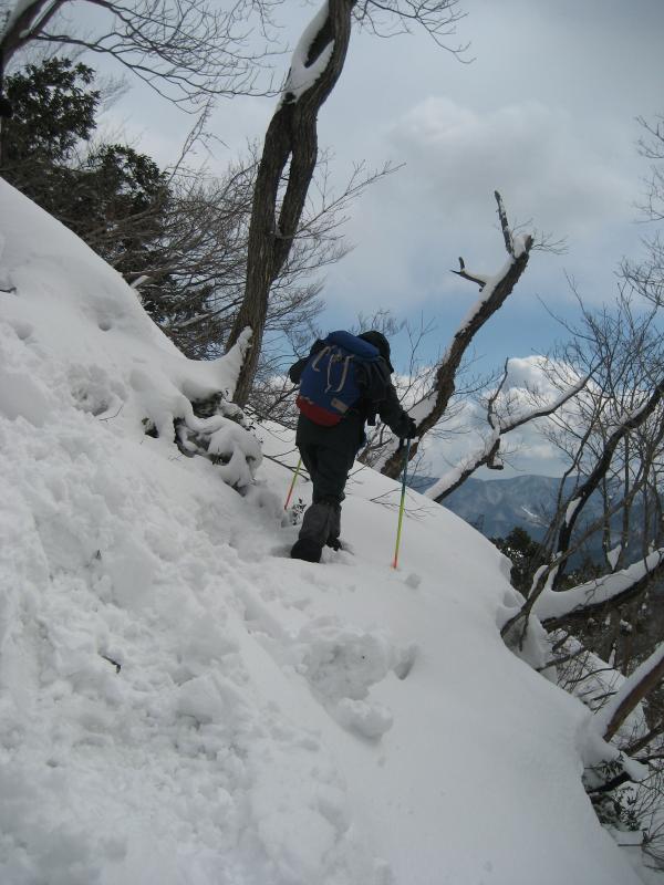 かなり雪が積もっていて ふみ跡がありません 武奈の木平から上は少し複雑な地形をしています 降雪後のトレースの無い時やガスの時などはルートが判りにくいので2万5千分の1の地形図の持参をお薦めします
