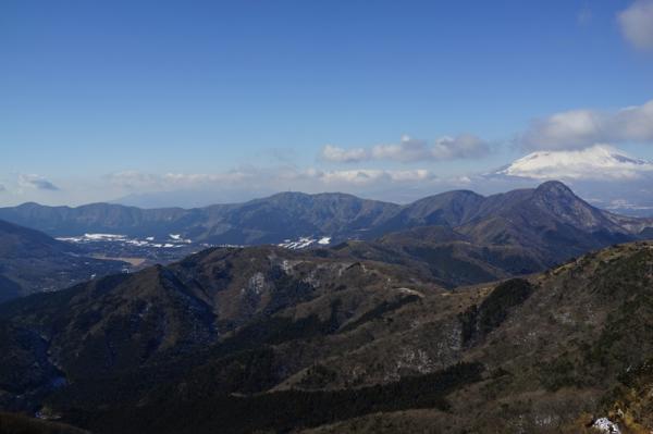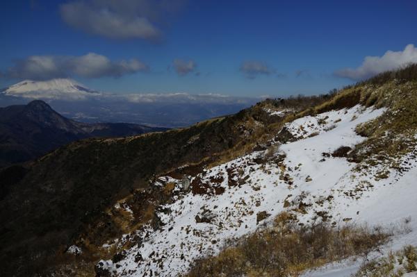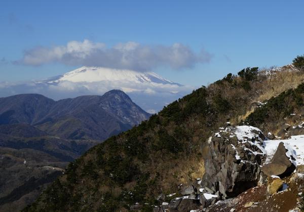 稜線は箱根火山の噴出物が粘土のようになっている部分が多いです。明神ヶ岳、金時山は見晴らしが良い分風が良くあたります。温かい服を着て休みましょう。