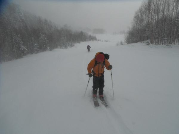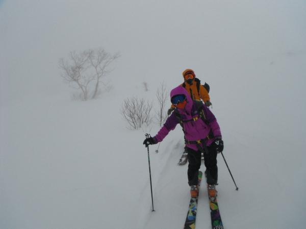ゴーグルを忘れてしまい、サングラスだけでの行動でしたが、風で雪が舞い顔が痛い。