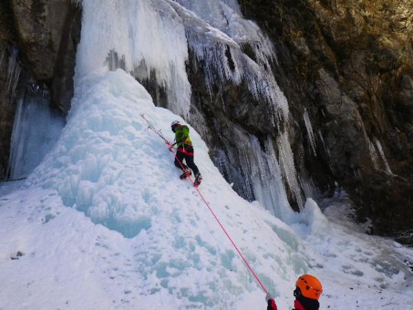 氷が階段状になっているので登りやすく、みんなで楽しく登りました。