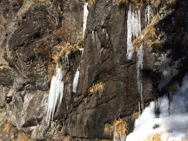三つ峠山からは凍っているところ、雪が解けて泥があるところ、完全に乾いているところがあります。