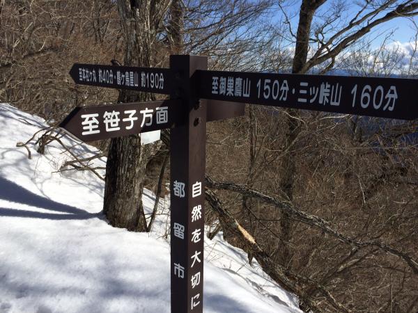 富士山の展望も良く、この時季でもよく登られている三つ峠山ですが、ほとんどは南側からが多いようで、ほとんど人に会わずに山頂に立ちました。