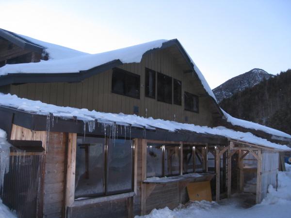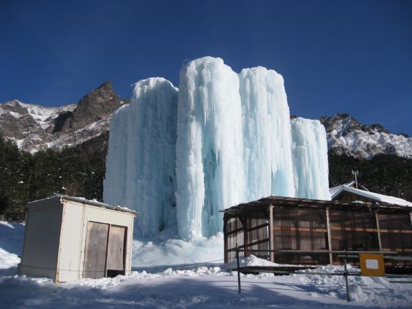 - 美濃戸口から赤岳鉱泉に向かう途中に所々凍結してる場所もあるので、アイゼンをつけて行けば安心です。