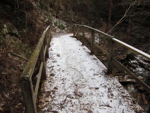 一部沢沿いに雪がうっすらあるぐらいで、アイゼン等は不要でした。