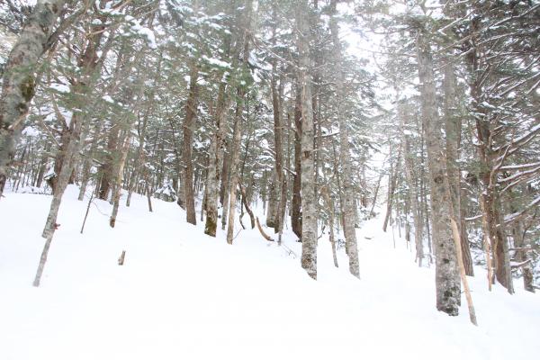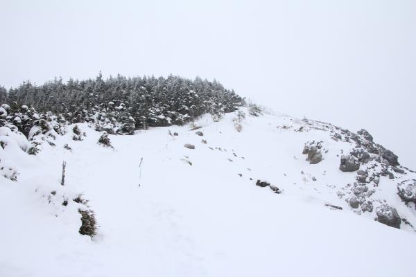 途中急坂もありましたが、時々見える開放された雪景色や、雪化粧に染まった森への入り口などに癒されながら快適に登れました。