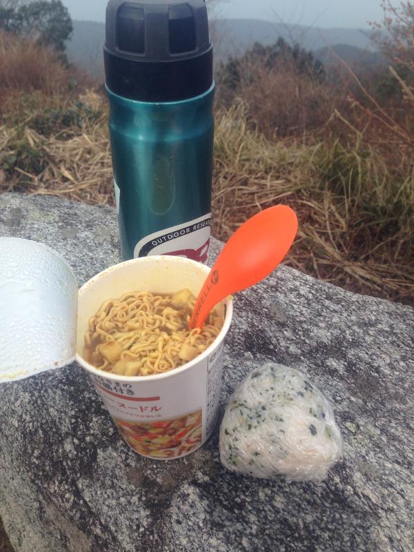 お楽しみのカップラーメンを作ってブランチタイム。ところが!大事な座布団を忘れてしまい立ちながら食べる羽目に(泣)二条岳山頂はほどよく広く、巨岩がたくさん立ち並び、その岩の上で展望を楽しみながら、、と思ったのに冷た過ぎて座っていられません。こんな時に座布団があったらへっちゃらなのに、、、