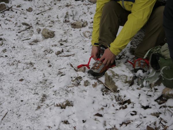 歩行開始から15分程度で6本爪アイゼン装着しました。