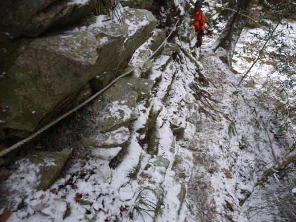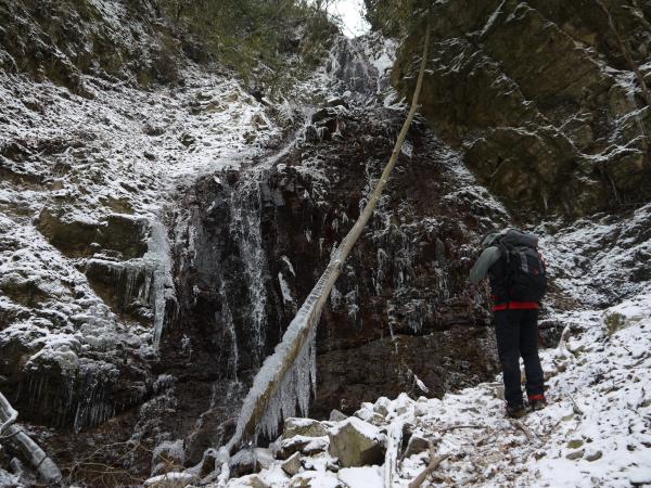 似以滝から白石谷を下りに使いましたが、やや大きな岩の段差や凍った岩肌の通過がありますので自信のない方は紅葉谷側へ出ることをオススメします。