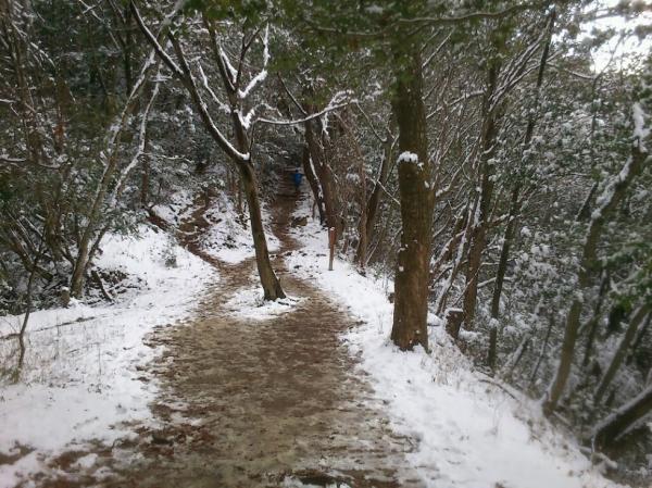朝起きたら雪が積もっていましたので大文字山へ出かけました。
