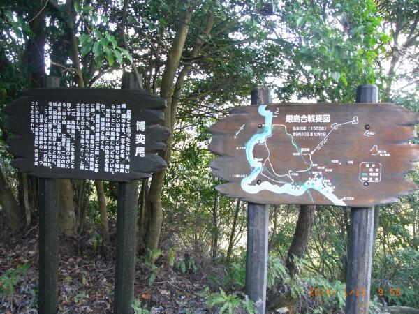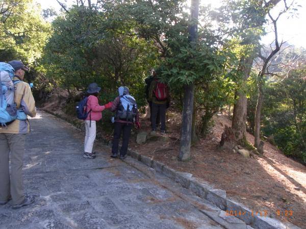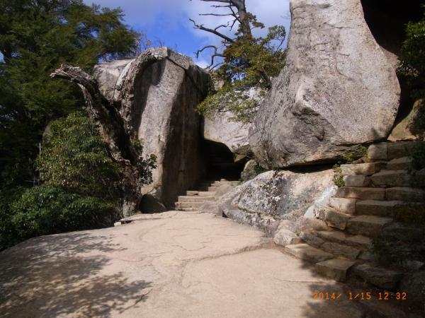 - 宮島桟橋(10分)博奕尾コース入口(35分)博奕尾(65分)榧谷ロープウェイ(20分)獅子岩駅ロープウェイ(30分)霊火堂(5分)弥山山頂(2分)千満岩(1分)船岩(30分)獅子岩駅ロープウェイ(45分)紅葉谷公園