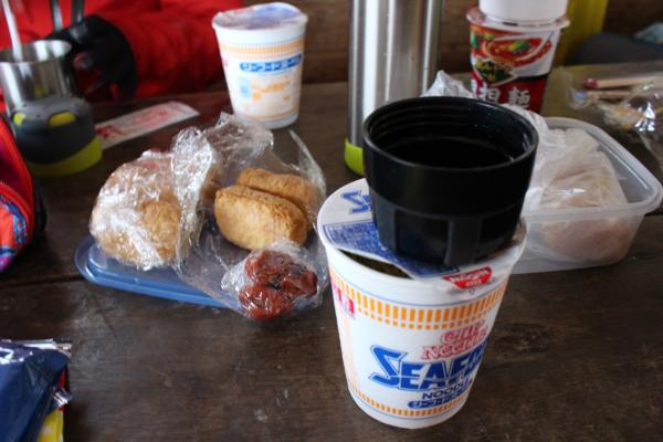 8合目から、アイゼンを装着し、藤原山荘からスノーシューを装着しました。