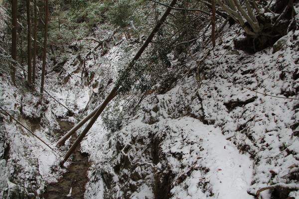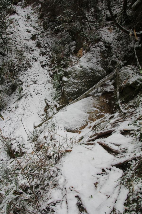 妙見の滝までで少しロープ、梯子があるのですが、凍結しているので滑らないように注意が必要です。