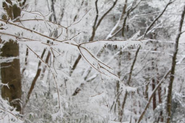 沢伝いに対岸を行き来し、川の流れる音、雪が落ちる音、一面霧氷の自然を目の当たりにすると、肩の荷が落ちたかのようにスッキリします!
