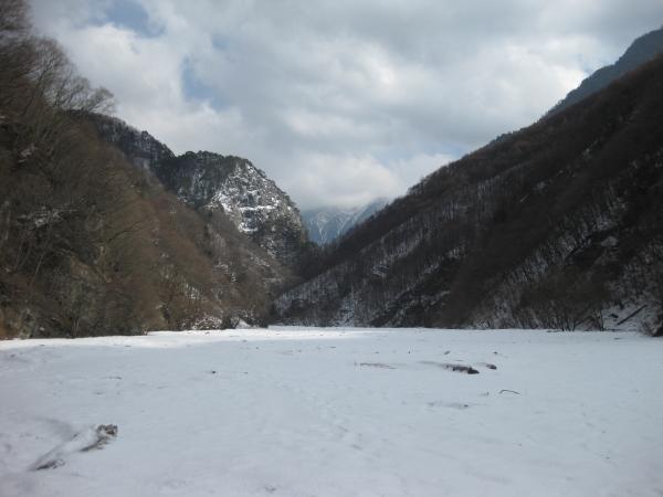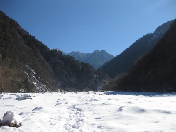 とにかくながーい、北沢峠までの道のり。雪原となった河原歩きは楽しいですが、だんだんとうつむきがちに…。