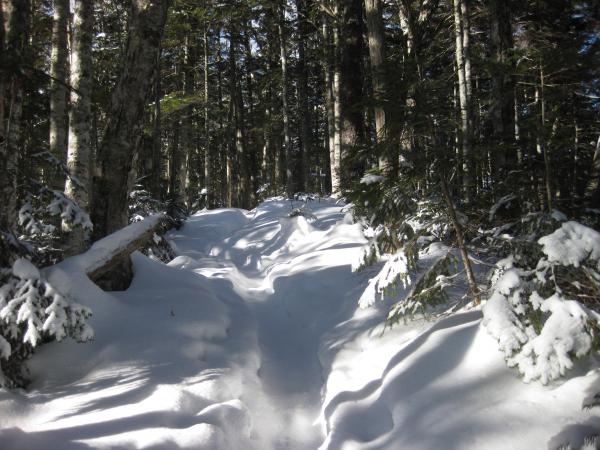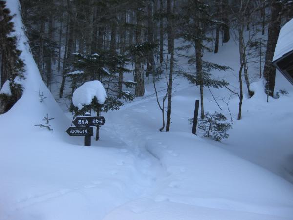 積雪は夏道上で足首まで。夏道をはずすと膝上まで埋まります。