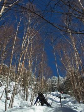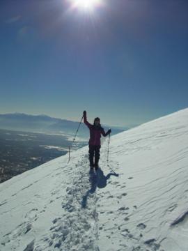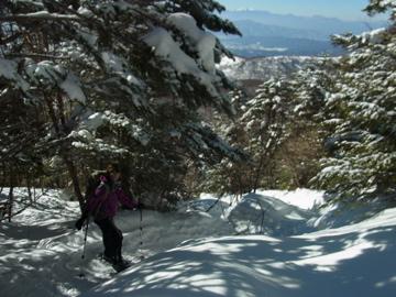 この日は快晴で、山頂直下までは、風もなく、非常に穏やかな天気。まさに、スノーシュー日和でした。