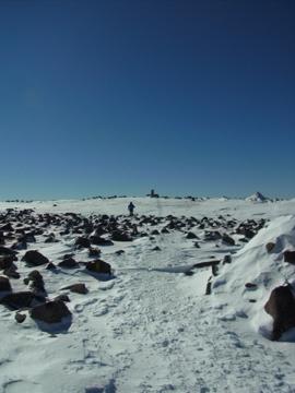頂上が近づくにつれて、岩が増えて来たので、ここでスノーシューを外して、山頂へ。