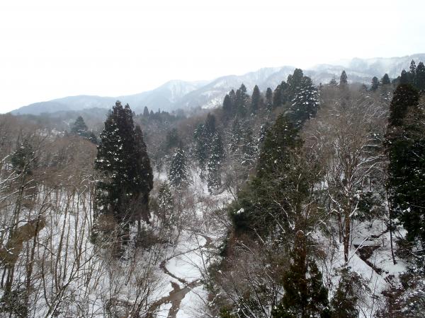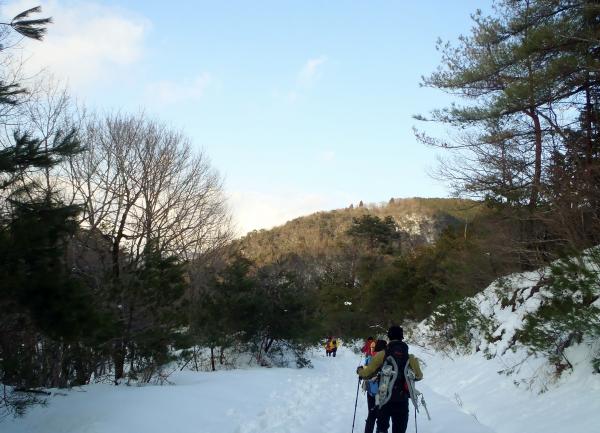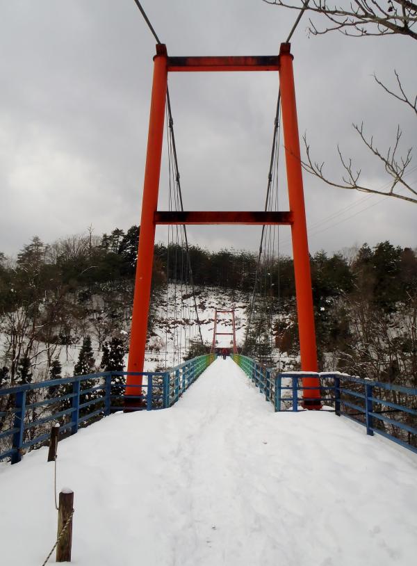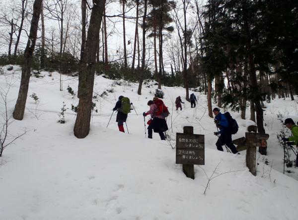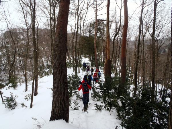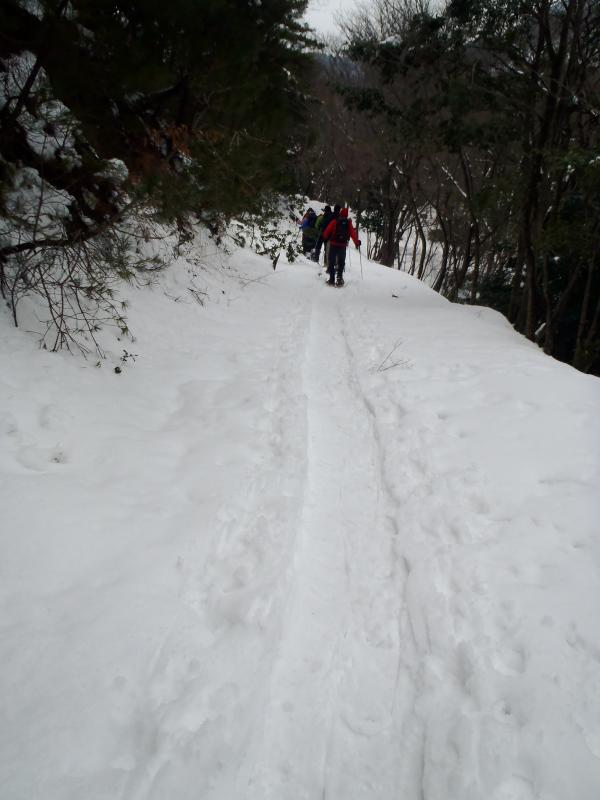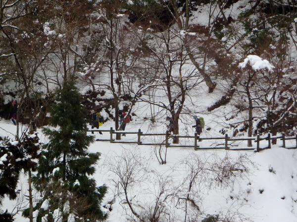 無雪期の無限階段も雪に覆われて楽々?ですが、ヒールリフター付きアッセントタイプのスノーシューがお勧めです。