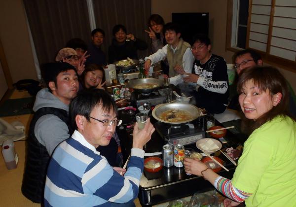 下山後は比良駅近くのコテージへ移動後、レディースチーム作のカモ鍋を囲んで、今年の山登り計画を相談しながら
