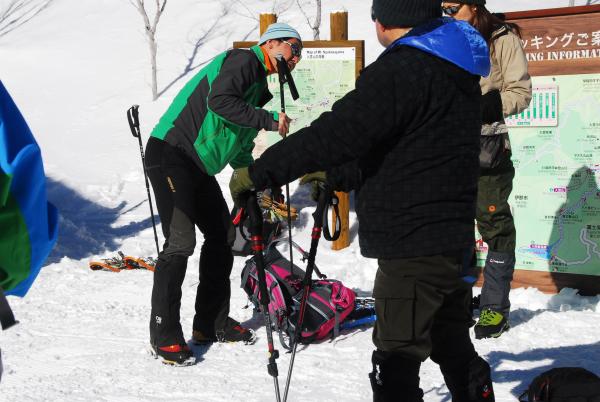 また現地ではスノーシューの使い方、身支度をする際の注意点など参加されてる方々にわかりやすく説明していただきました。