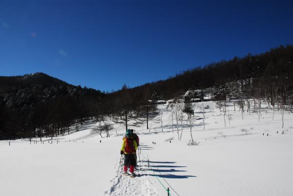 コースの雪のコンディションもよく、天気も快晴でゆっくり湿原を越えて入笠山へ。