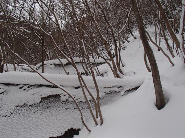 以前登ったのは2月の後半でその時はもっと雪が比較的締まっていましたが、今回は湿気を帯びて重たく比較的柔らかい雪。足元も定まらない泳ぐような感覚(大げさですが)が苦しくもあり楽しいものでした。一人では行きませんが(笑)