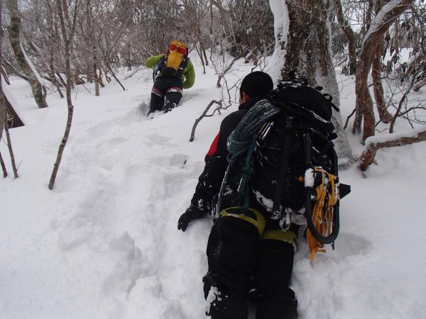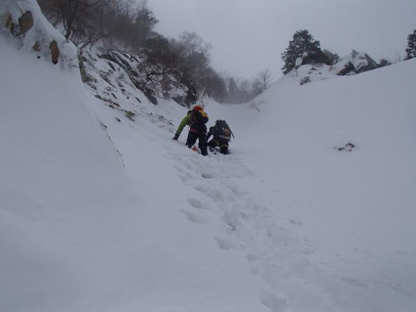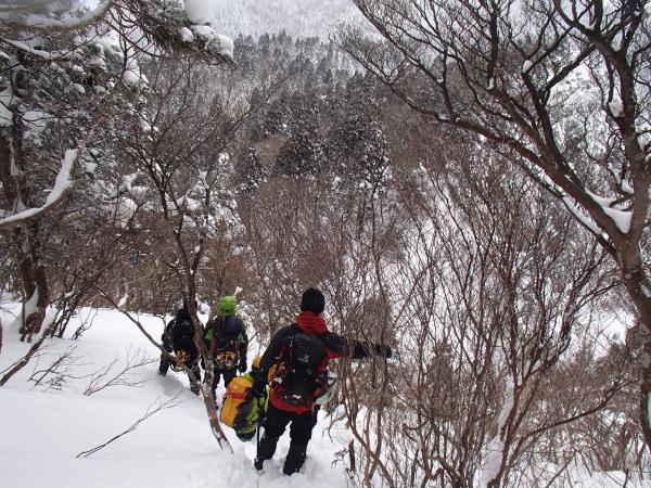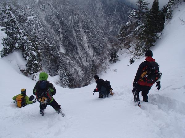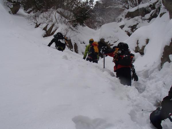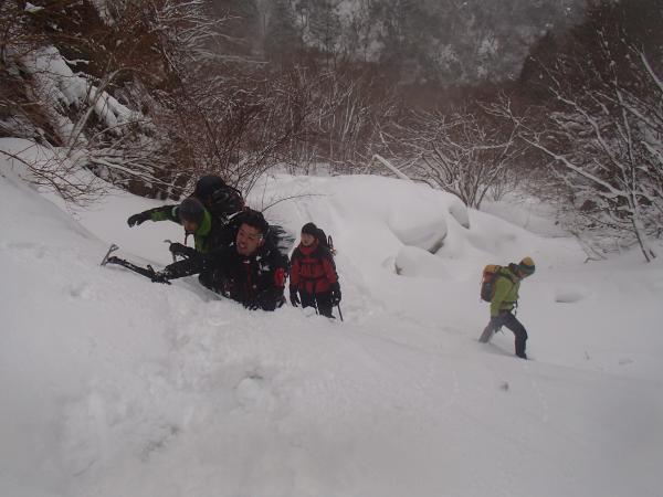 5年ほど前に連れて行ってもらった堂満ルンゼへもう一度行く機会を得ました。苦しいラッセルも5人で交代するとなんだか楽しいものとなりました。