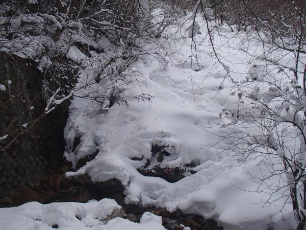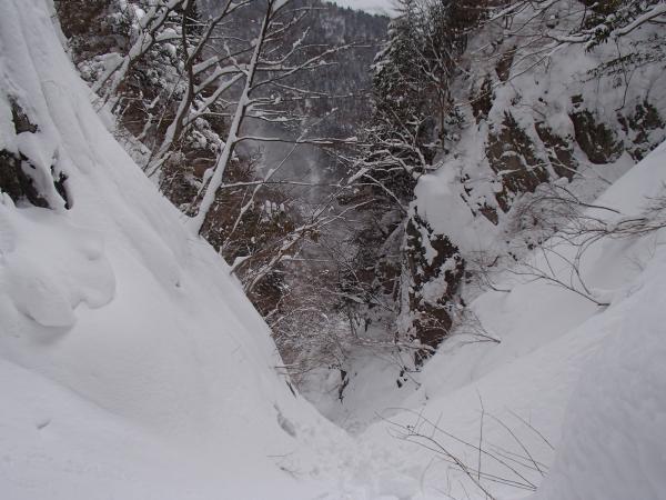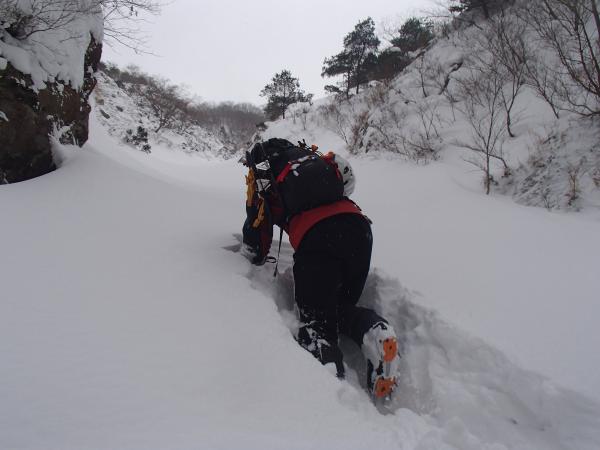 - ルンゼ内の積雪深はひざ~胸ぐらいの深さ