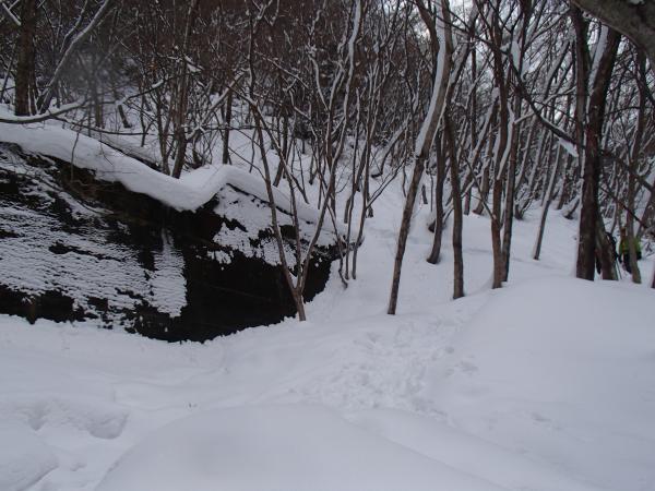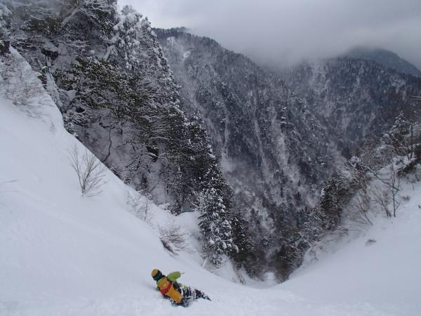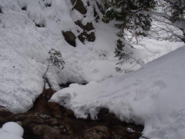積雪内には特に怪しげな層は見えませんでしたが、落雪に誘発されたスノーシャワー?は時々遭遇しています。また、人が埋まるような規模ではありませんでしたが、表層雪崩も目撃しました。