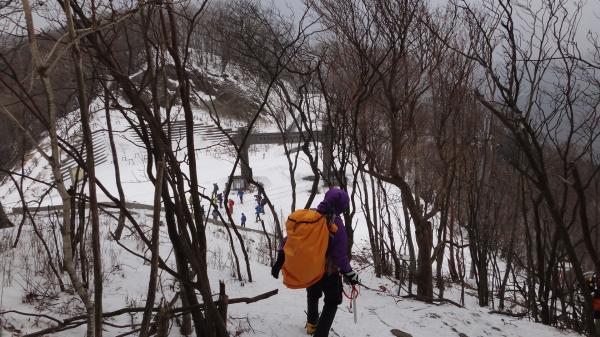 雪が柔らかかったためアイゼン歩行は実感が沸きにくいとこもあったかもしれませんが、皆様真剣に取り組まれておりました。