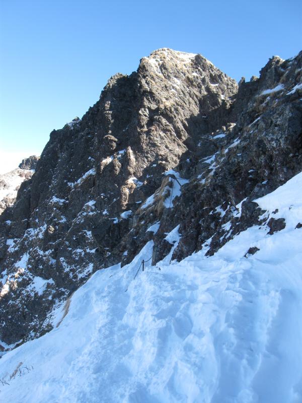 トラバース箇所の積雪が少なく、ほとんど夏道に近かったので歩きやすかったです。