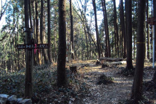 両峯神社跡を超えれば、すぐに天覚山山頂です。山頂はひらけていて、景色もよいので記念撮影をしてみてはいかがでしょうか。平日でしたが、私以外に三人組の登山者がおりました。
