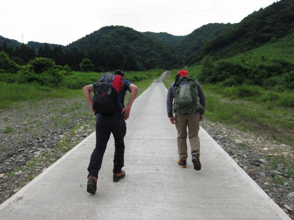 歩き始めから、ながーいコンクリート道&石ころゴロゴロ道で汗だくになりました。